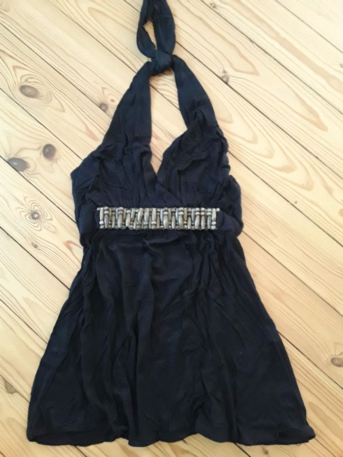 Débardeur noir avec bande en dessous la poitrine en bois