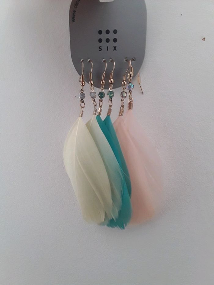 Lot de 3 boucles d'oreilles en plumes Jaune, bleu et rose
