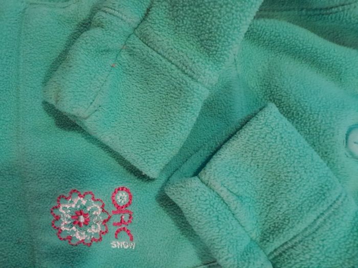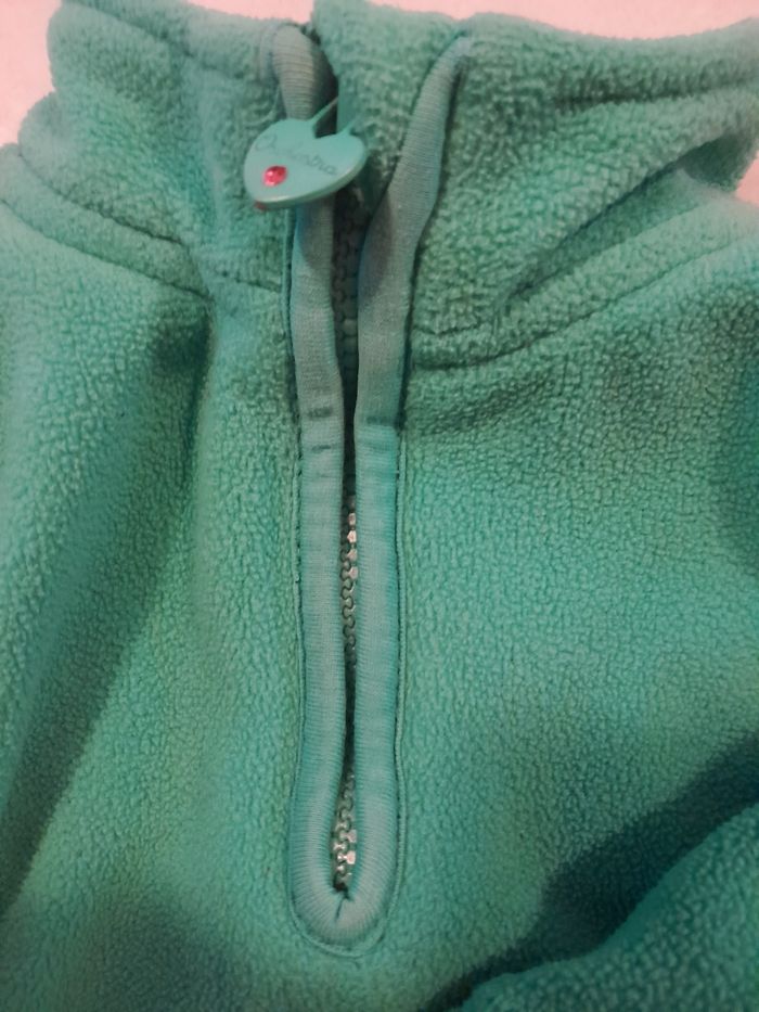 Pull polaire avec fermeture éclair qui remonte en hait du cou, effet col roulé. Tient très chaud, parfait pour l'hiver.