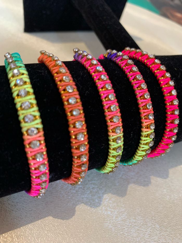 Lot de 5 bracelets fils et brillants, fantaisie En 5 couleurs comme la photo #braceletsperles #braceletfantaisie #amitié #braceletsfilcoton
