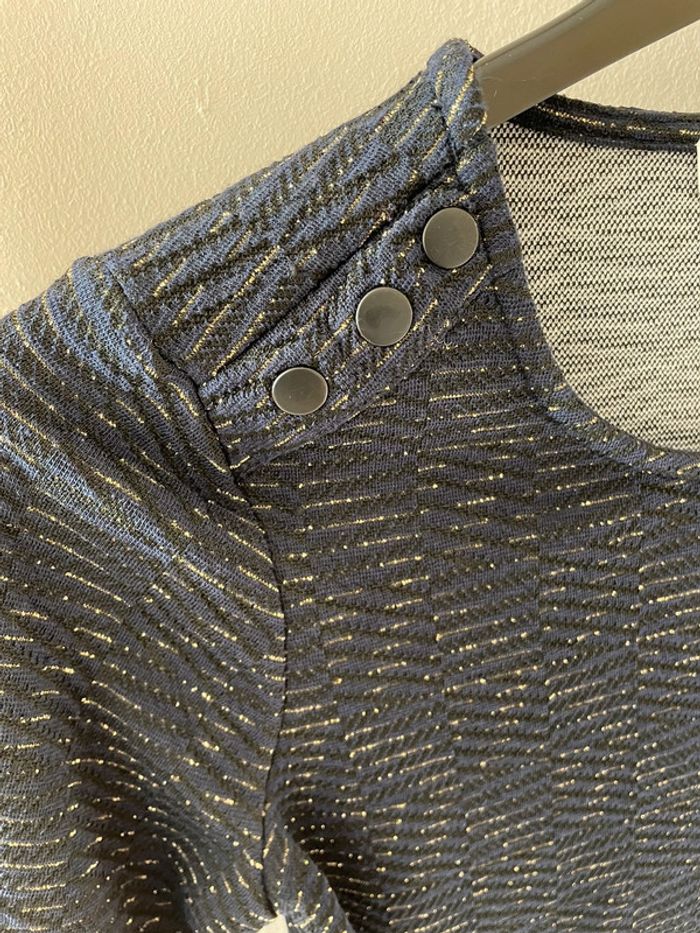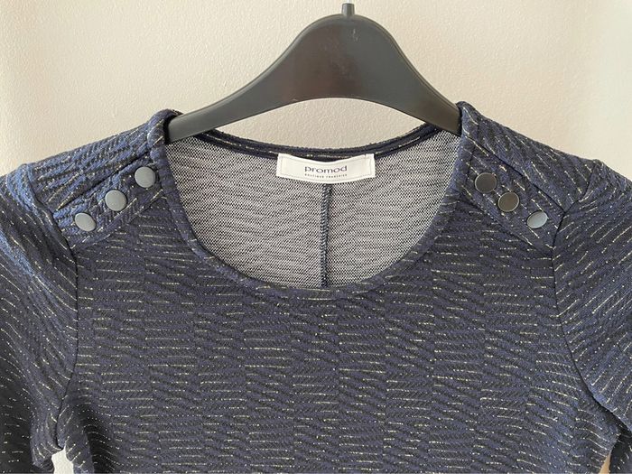 Robe hiver manches 3/4 de la marque Promod couleur bleu nuit avec des liserés dorés Taille 34/36 Neuve jamais portée