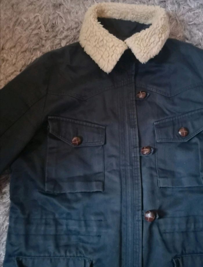 Veste épaisse bleue marine, avec col en laine. #morganelcftaillel