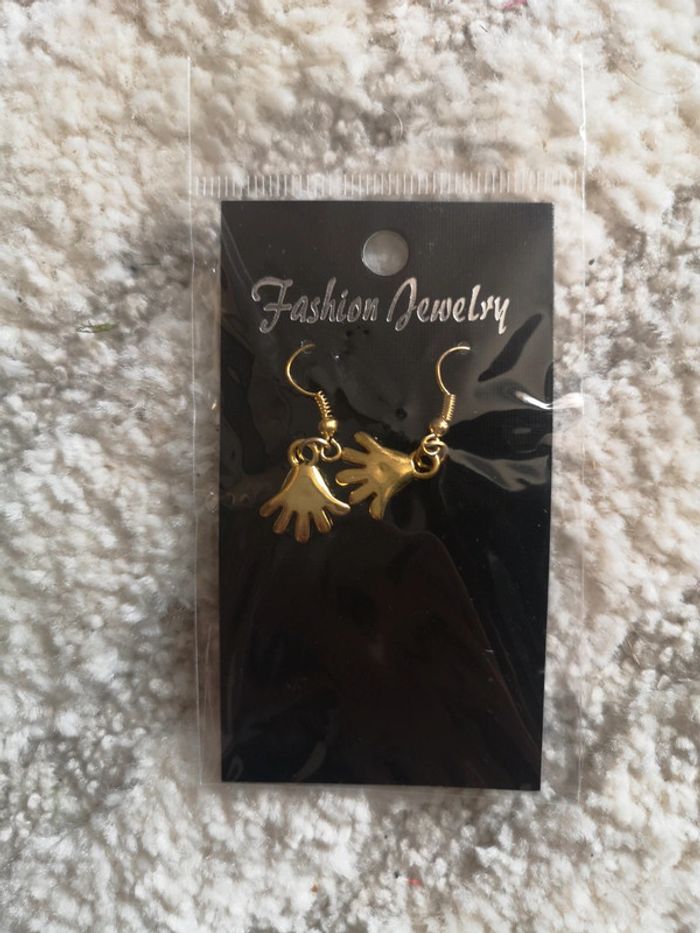 Petites boucles d'oreilles dorées mains - photo numéro 1