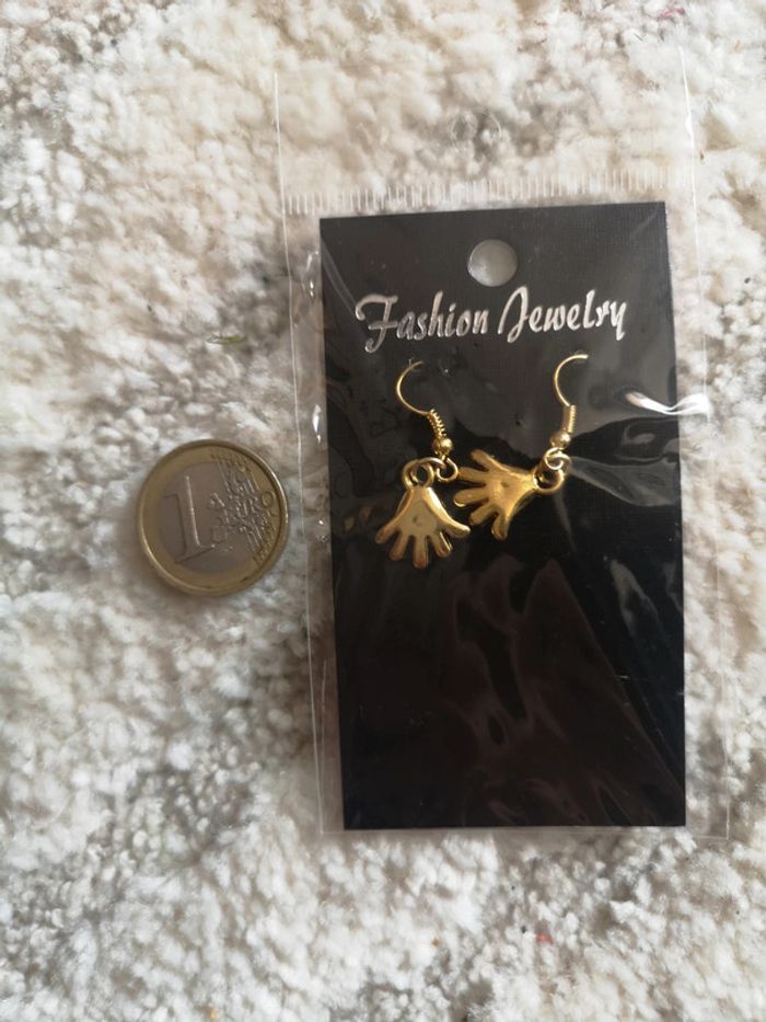 Petites boucles d'oreilles dorées mains - photo numéro 2
