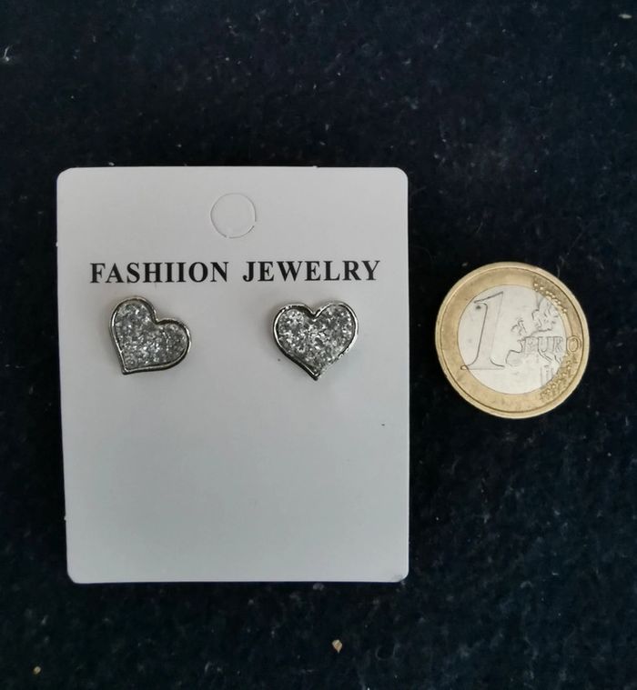 Boucles d'oreilles en forme de cœur à paillettes argenté. Pour 1€ de plus je peux rajouter une pochette à maquillage rouge avec un petit miroir, si cela vous intéresse envoyez moi un message. Remise sur les lots profitez en, j'ai énormément de paires dans mon dressing #morganelcfbijoux