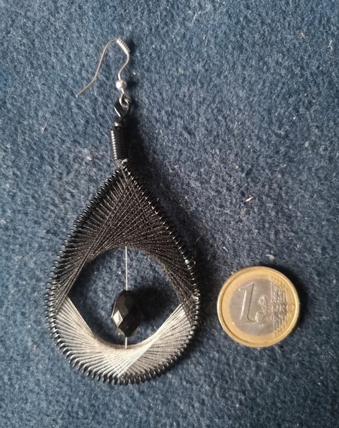 Boucles d'oreilles pendantes rondes noires. Pour 1€ de plus je peux rajouter une pochette à maquillage rouge avec un petit miroir, si cela vous intéresse envoyez moi un message. Remise sur les lots profitez en, j'ai énormément de paires dans mon dressing #morganelcfbijoux
