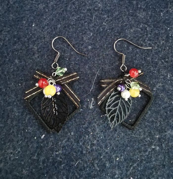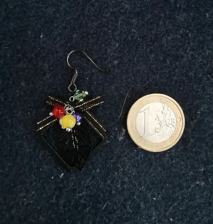Petites créoles noires fantaisie. Pour 1€ de plus je peux rajouter une pochette à maquillage rouge avec un petit miroir, si cela vous intéresse envoyez moi un message. Remise sur les lots profitez en, j'ai énormément de paires dans mon dressing #morganelcfbijoux