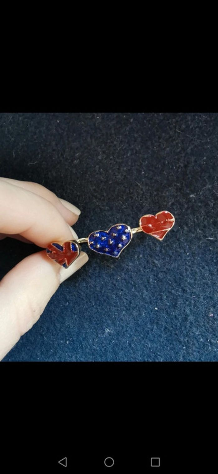Bague pour deux doigts avec petits cœurs bleus et rouges. Taille 57. Remise sur les lots profitez en, j'ai énormément de bijoux dans mon dressing. Pour 1€ de plus je peux rajouter une pochette à maquillage rouge avec un petit miroir, si cela vous intéresse envoyez moi un message. #morganelcfbijoux