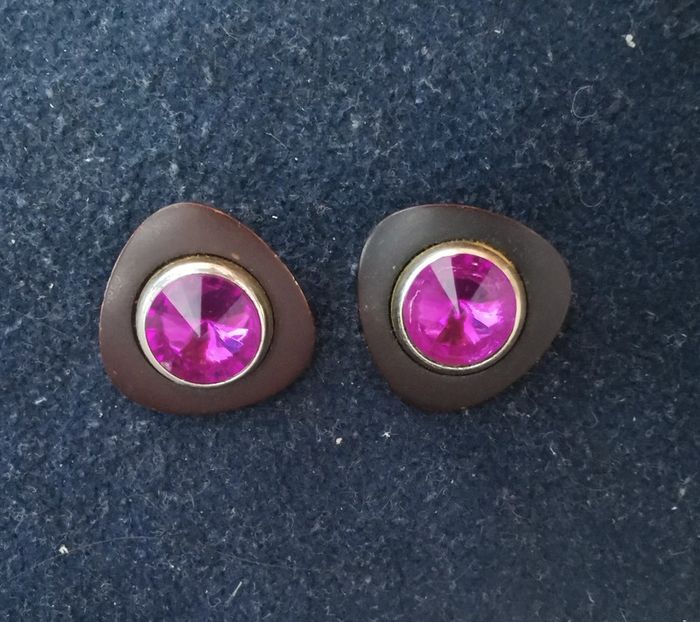 Boucles d'oreilles fantaisie vintage, avec strass violet. Années 80. Remise sur les lots profitez en, j'ai énormément de bijoux dans mon dressing. Pour 1€ de plus je peux rajouter une pochette à maquillage rouge avec un petit miroir, si cela vous intéresse envoyez moi un message. #morganelcfbijoux