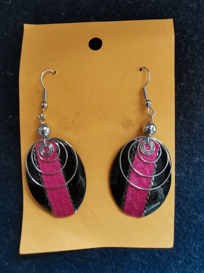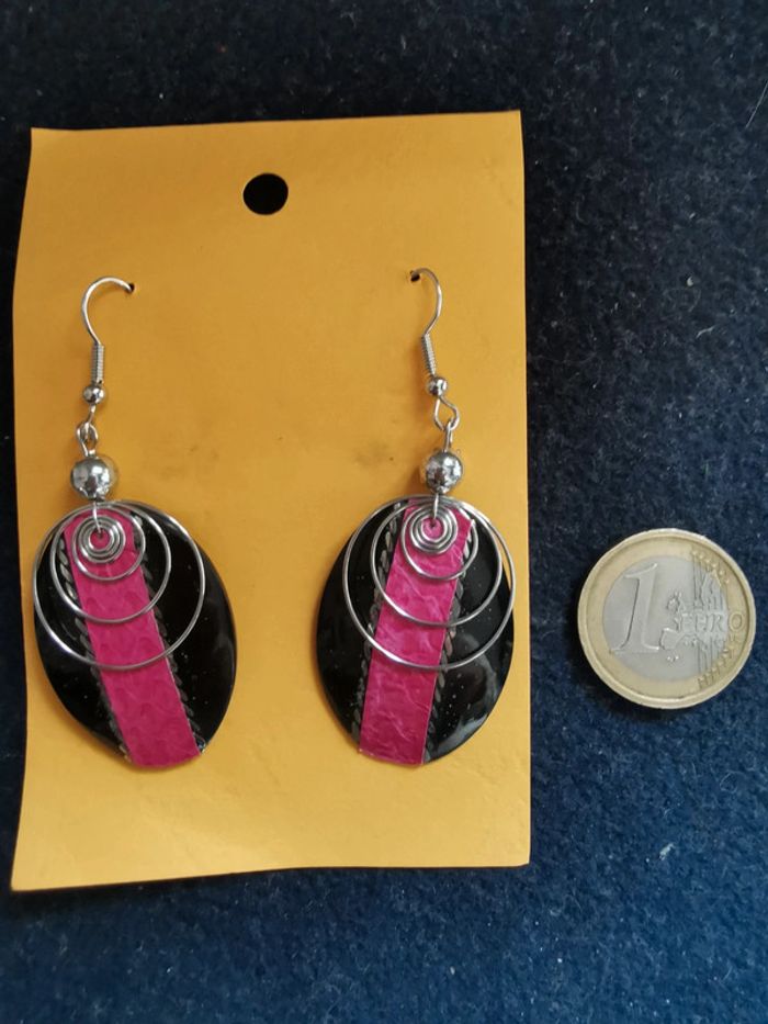Boucles d'oreilles fantaisie roses et noires. Remise sur les lots profitez en, j'ai énormément de bijoux dans mon dressing. Pour 1€ de plus je peux rajouter une pochette à maquillage rouge avec un petit miroir, si cela vous intéresse envoyez moi un message. #morganelcfbijoux