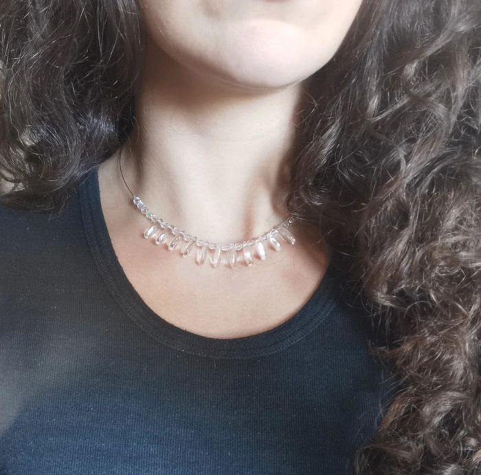 Joli collier ras du cou avec perles transparentes, vintage. Remise sur les lots profitez en, j'ai énormément de bijoux dans mon dressing. Pour 1€ de plus je peux rajouter une pochette à maquillage rouge avec un petit miroir, si cela vous intéresse envoyez moi un message. #morganelcfbijoux