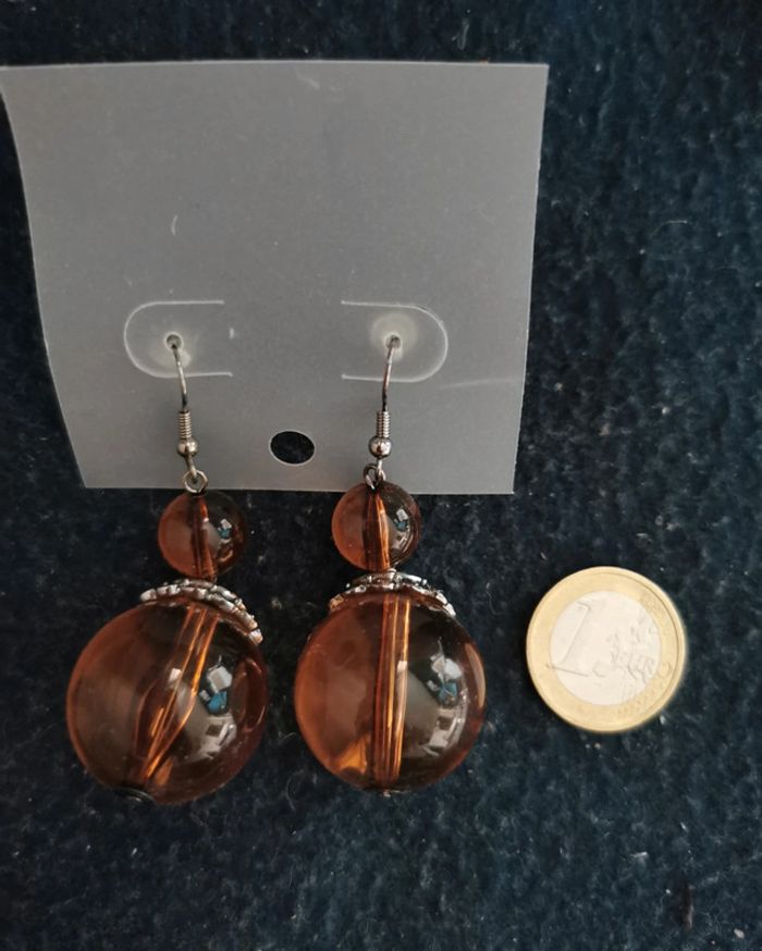 Boucles d'oreilles marrons transparentes, rondes. Remise sur les lots profitez en, j'ai énormément de bijoux dans mon dressing. Pour 1€ de plus je peux rajouter une pochette à maquillage rouge avec un petit miroir, si cela vous intéresse envoyez moi un message. #morganelcfbijoux