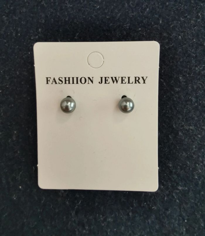 Petites boucles d'oreilles nacrées grises, neuves. Remise sur les lots profitez en, j'ai énormément de bijoux dans mon dressing. Pour 1€ de plus je peux rajouter une pochette à maquillage rouge avec un petit miroir, si cela vous intéresse envoyez moi un message. #morganelcfbijoux