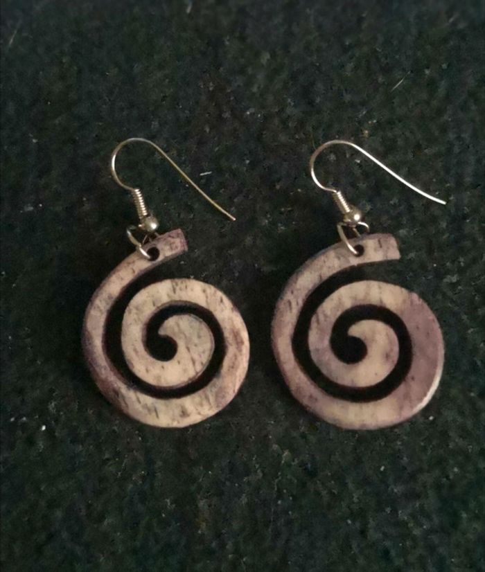 Boucles d'oreilles fantaisie en forme de spirale mauves et blanches. Remise sur les lots profitez en, j'ai énormément de bijoux dans mon dressing. Pour 1€ de plus je peux rajouter une pochette à maquillage rouge avec un petit miroir, si cela vous intéresse envoyez moi un message. #morganelcfbijoux