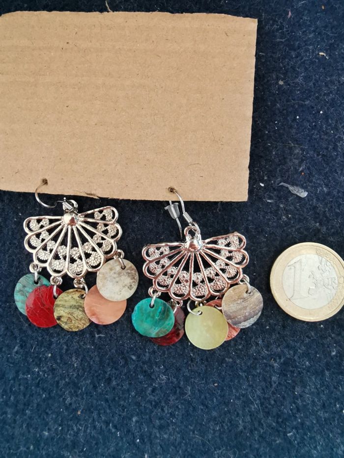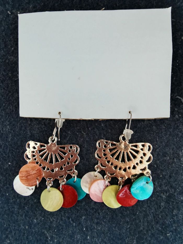 Boucles pendantes multicolores - photo numéro 3