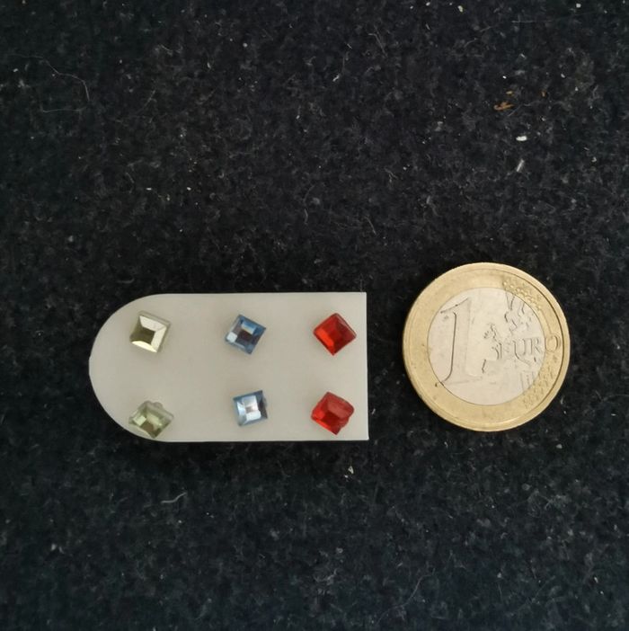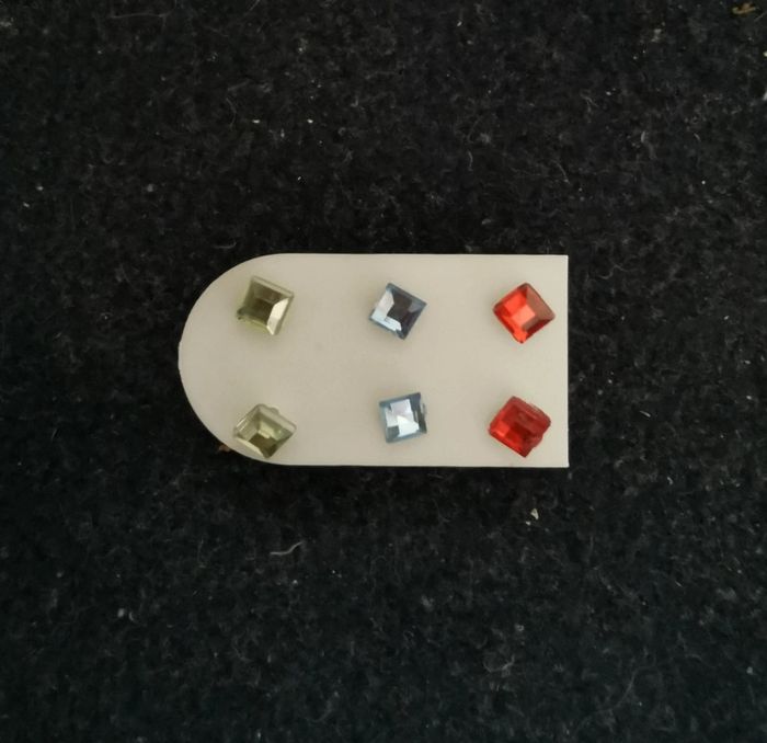 Trois paires de puces d'oreilles strass, verts, bleus et rouges. Remise sur les lots profitez en, j'ai énormément de bijoux dans mon dressing. Pour 1€ de plus je peux rajouter une pochette à maquillage rouge avec un petit miroir, si cela vous intéresse envoyez moi un message. #morganelcfbijoux