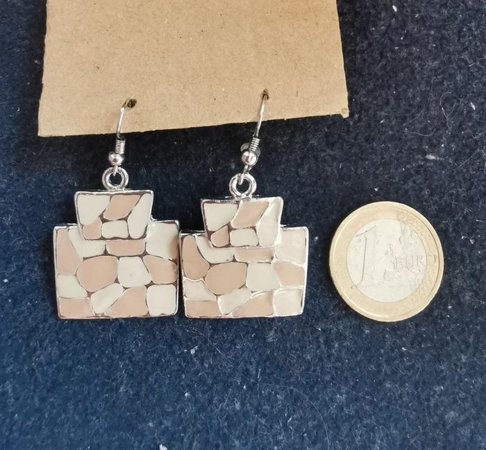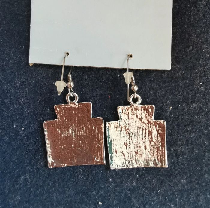 Jolies boucles d'oreilles de forme originale. Pour 1€ de plus je peux rajouter une pochette à maquillage rouge avec un petit miroir, si cela vous intéresse envoyez moi un message. Remise sur les lots profitez en, j'ai énormément de bijoux dans mon dressing #morganelcfbijoux
