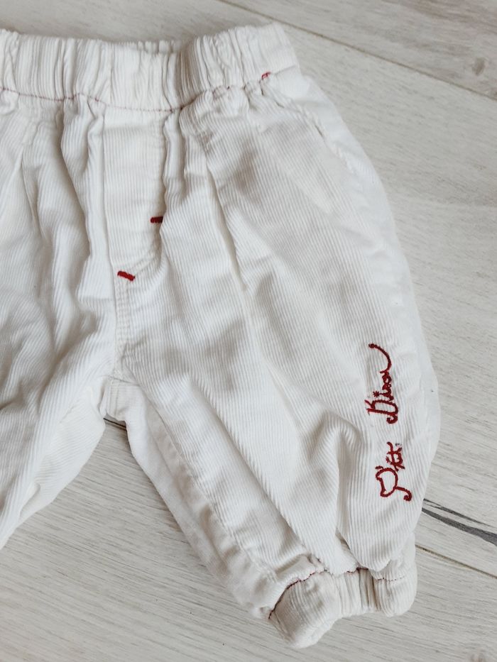 Vêtement bébé fille pantalon velours côtelé blanc Ptit bisou 1 mois