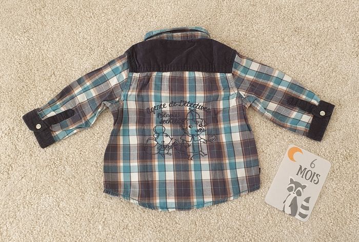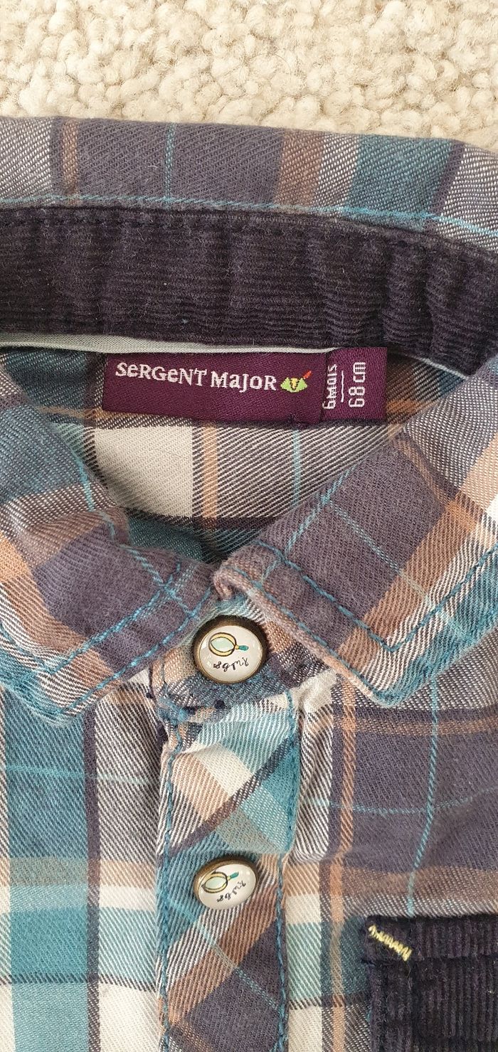 🛍 Article : Chemise à carreaux 🔝 État : Très bon état 📏 Taille : 6 mois 🌈 Couleur : Bleu 🏷 Marque : Sergent Major