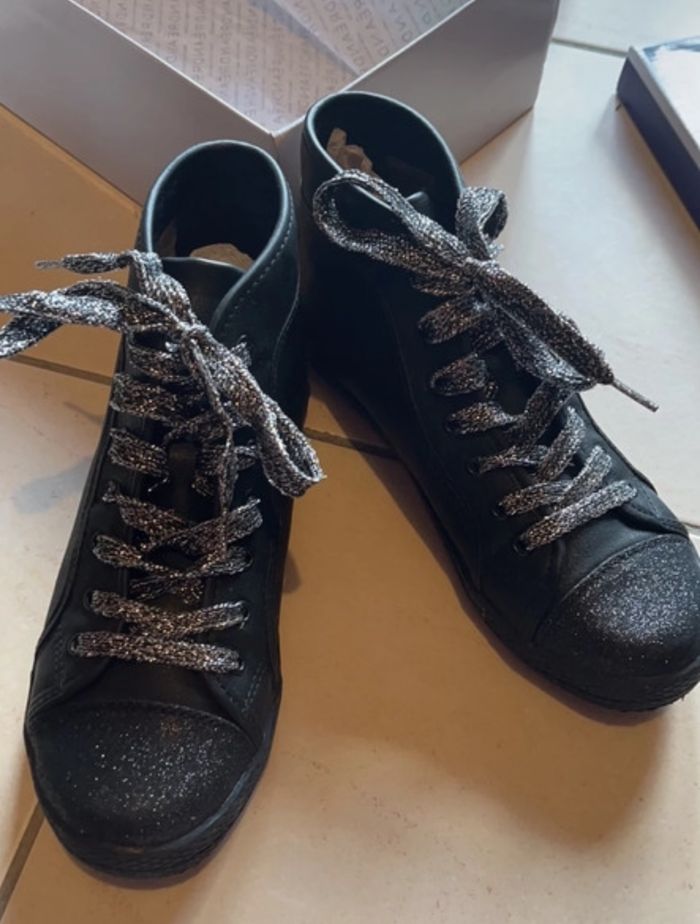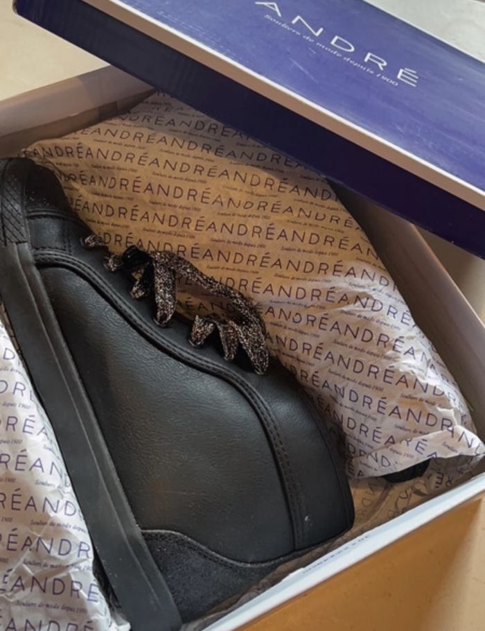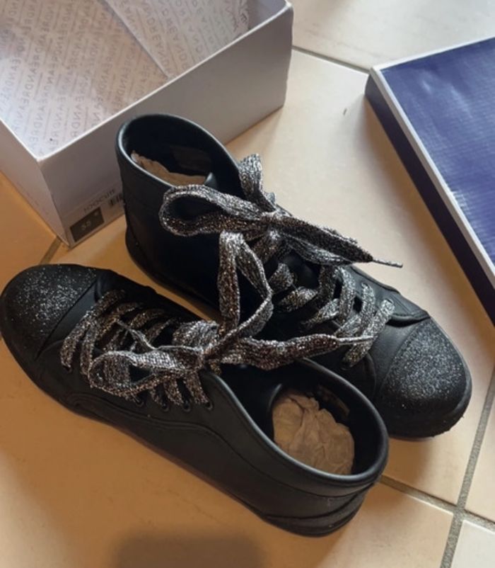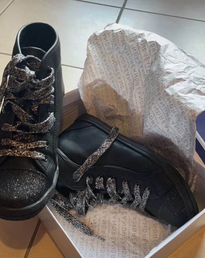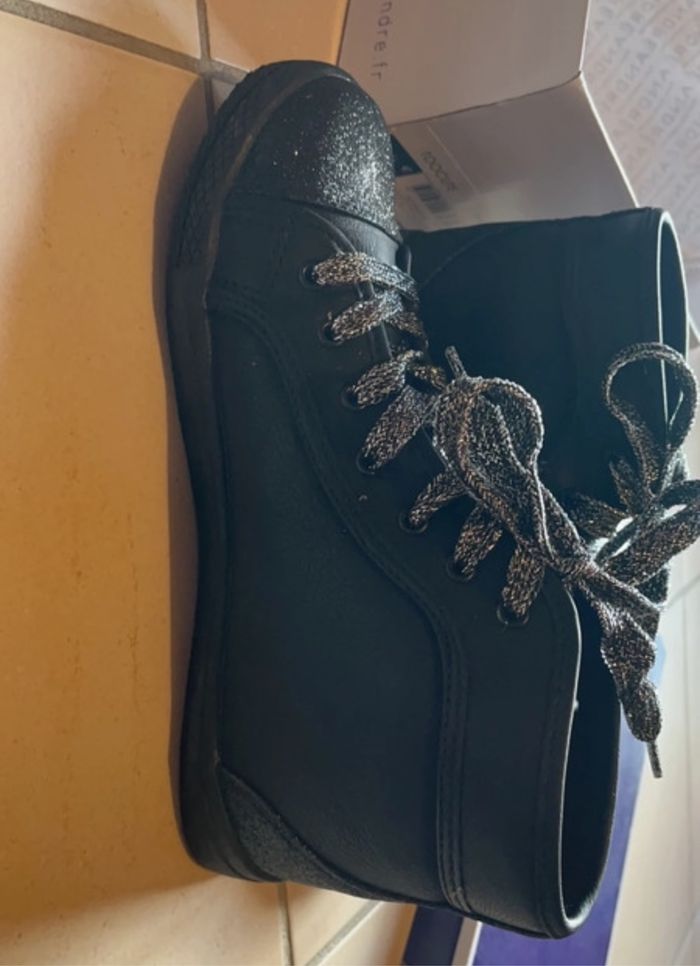 Vends une paire de baskets noirs pailletées de la marque andré Elles sont neuves. Elles peuvent convenir pour femme et enfant Taille : 39