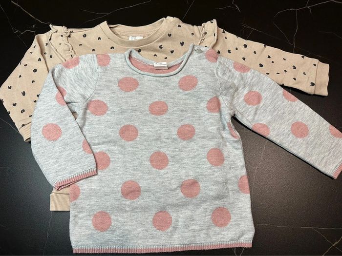 Lot de deux pulls fille Le Brun clair est plus dans l’esprit d’un sweat Et l’autre un petit pull H&M - 9/12mois - 80cm Très bon état