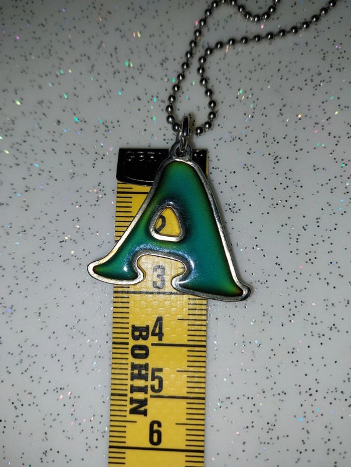 Bijou fantaisie Collier Pendentif lettre A Magnétique, Change de couleur en foncti9n de la température corporelle État neuf Acier inoxydable Dimensions sur photos A offrir ou à s'offrir #collier #collierfantaisie #collierfemme #collierfille #fantaisie #pendentif #pendenrifmagnetique #lettreA #lettrea #prenomcommencantparA #changedecouleur #bijoufantaisie #asoffrir #aoffrir #ideecadeau #anniversaire #Noël #sojubijoux #sojubijouxfantaisie #sojubijouxfemme #sojubijouxfille #sojucollier Envoi rapide suivi et soigné assuré