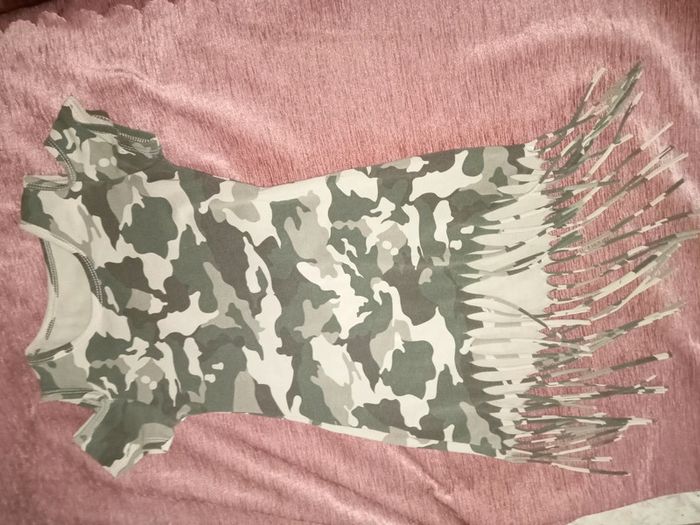 Petite robe 👗 imprimée camouflage finitions franges taille 6 ans excellent état - photo numéro 1