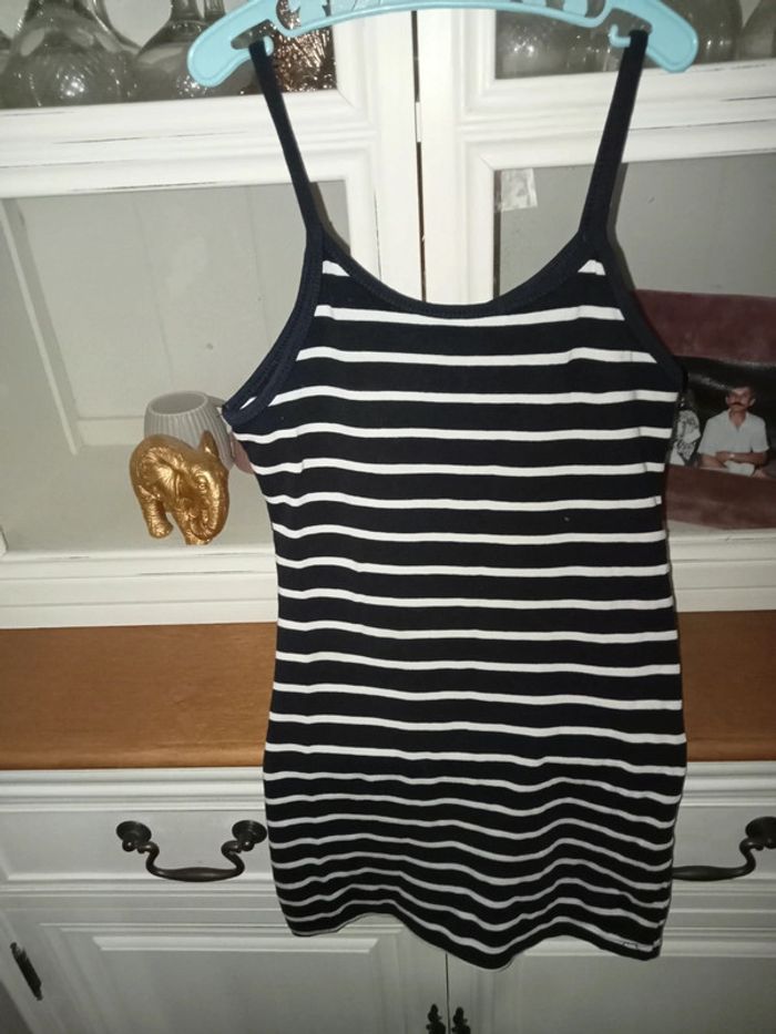 Petite robe marinière a bretelles bleu marine et blanche très bon état - photo numéro 4