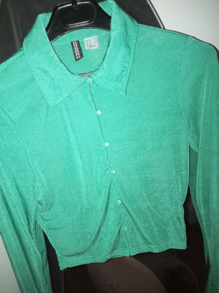 Top chemise / crop top chemise vert neuf by H&M taille S - photo numéro 1