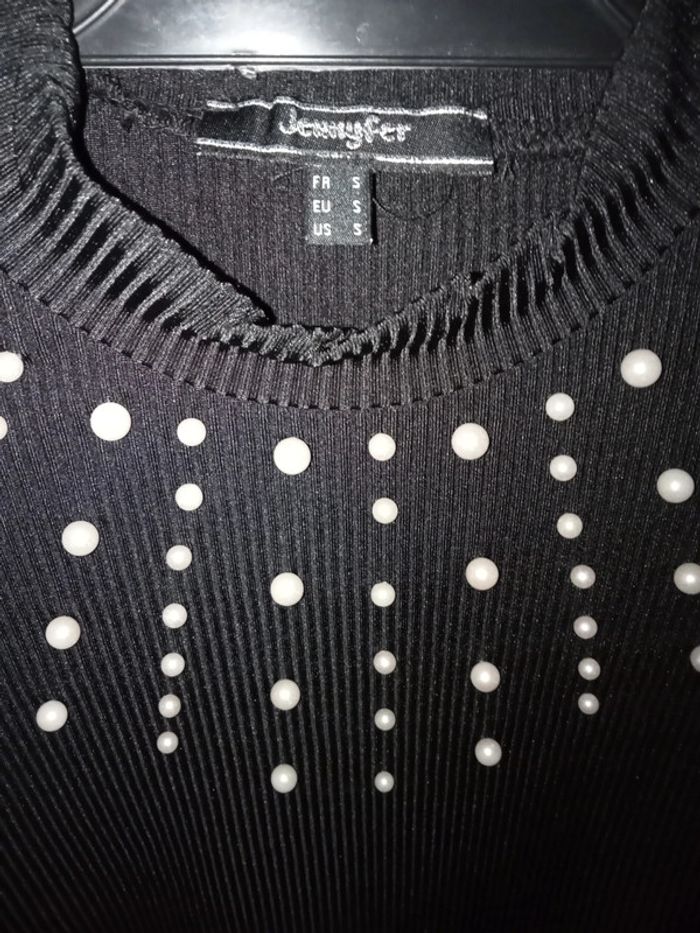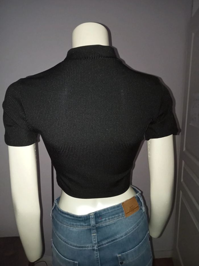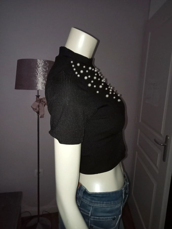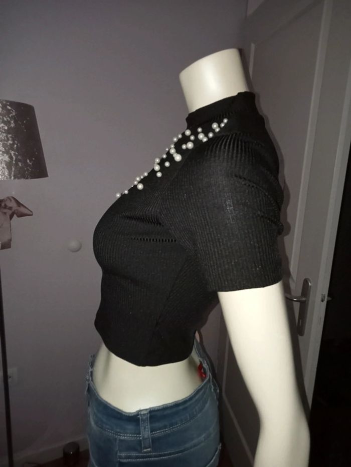 Crop top côtelé col montant en lycra noir a perles neuf by Jennyfer taille S - photo numéro 11