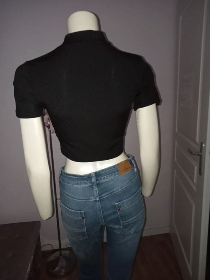 Crop top côtelé col montant en lycra noir a perles neuf by Jennyfer taille S - photo numéro 10