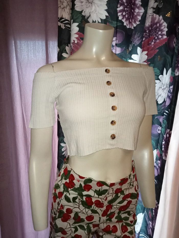 Crop top col bardot by Jennyfer état neuf taille S