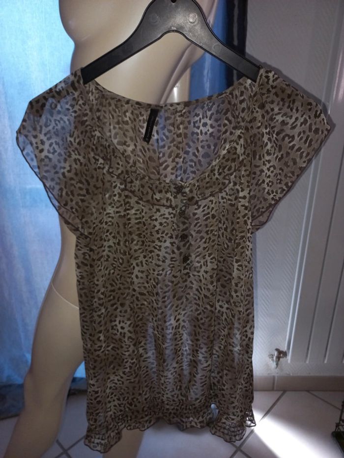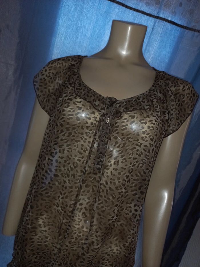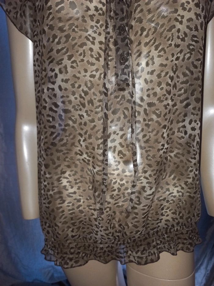 Blouse en voile Naf Naf taille 40 imprimée léopard en très bon état - photo numéro 2