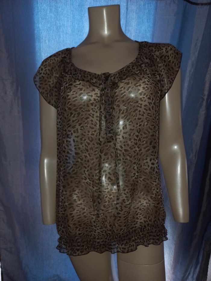 Blouse en voile Naf Naf taille 40 imprimée léopard en très bon état - photo numéro 1