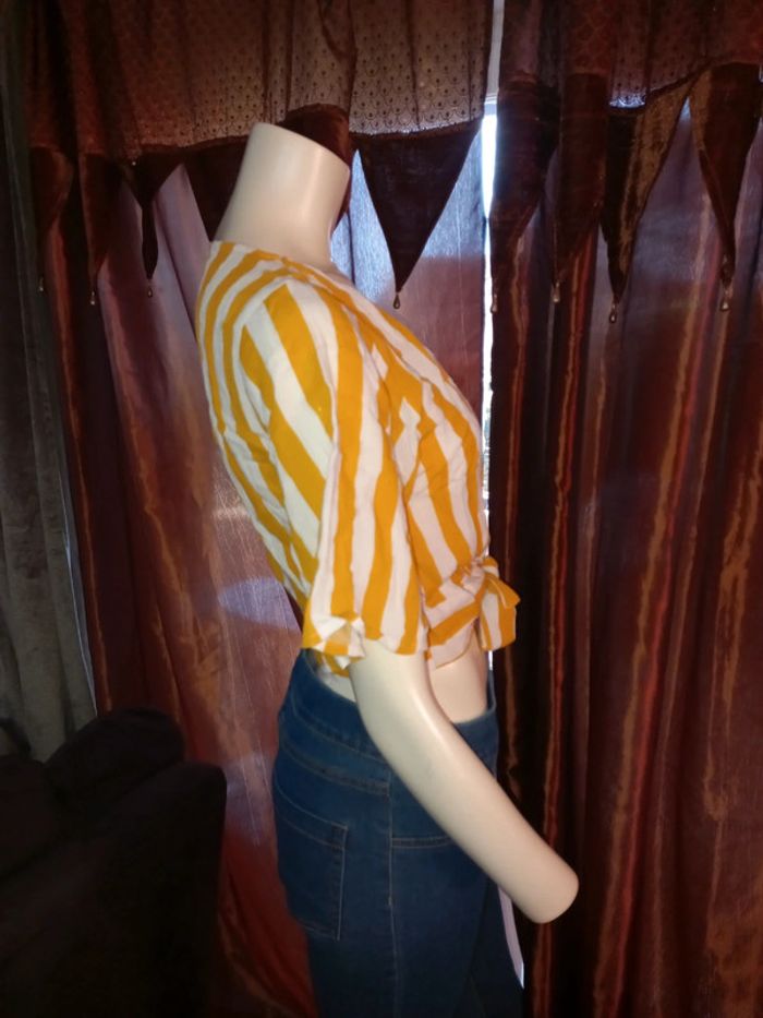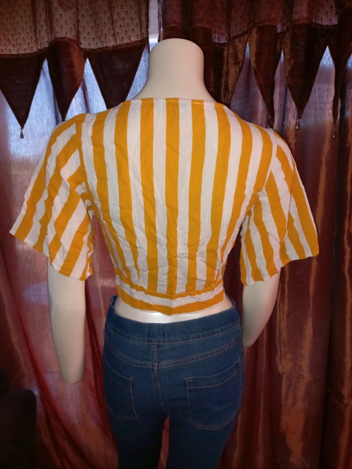 Top court by Jennyfer Rayé jaune et blanc Taille S état neuf - photo numéro 8