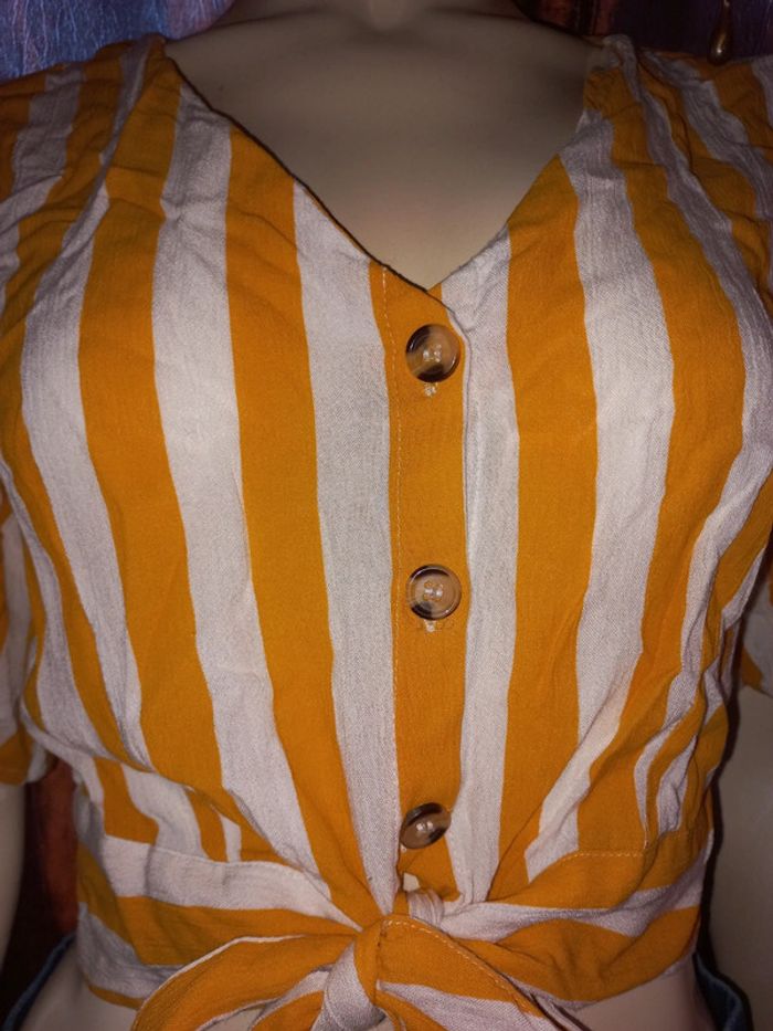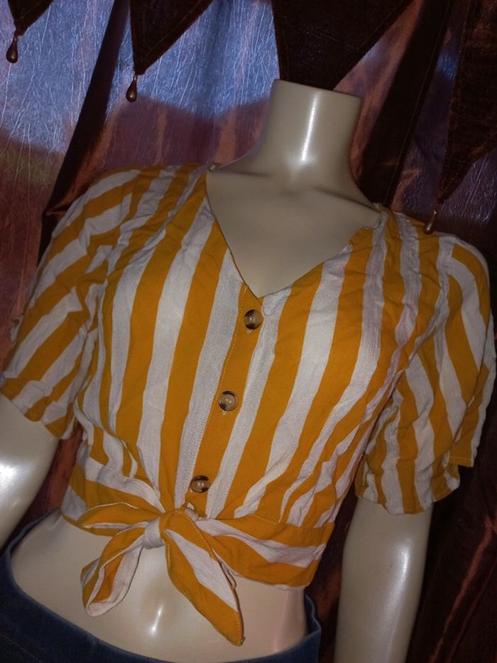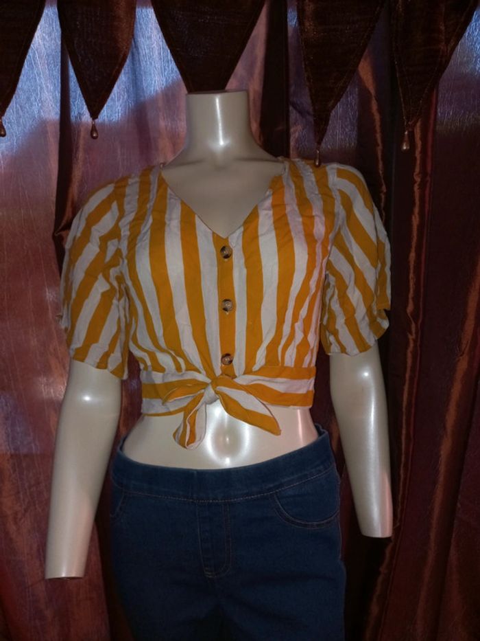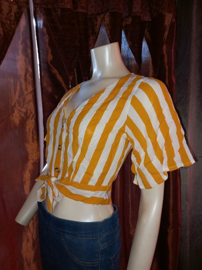 Top court by Jennyfer Rayé jaune et blanc Taille S état neuf - photo numéro 7