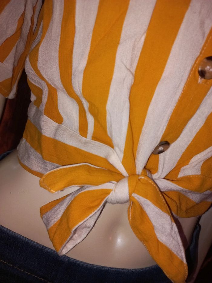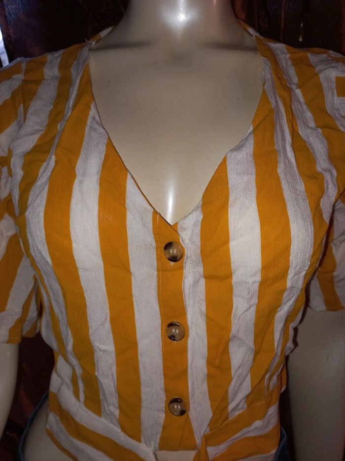 Top court by Jennyfer Rayé jaune et blanc Taille S état neuf - photo numéro 13