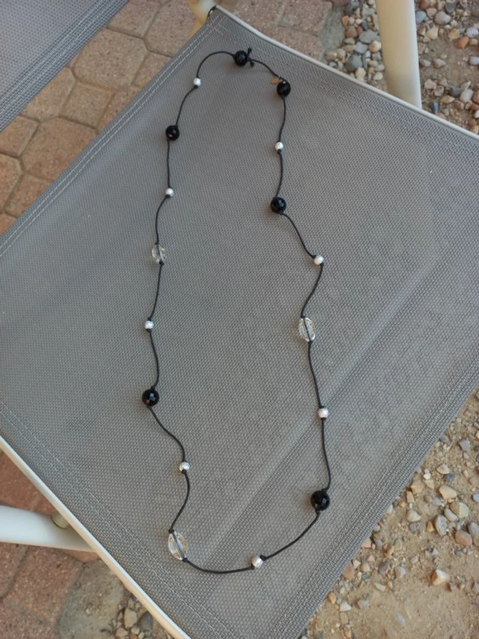 Collier / sautoir épuré en lacet/cordon et perles neuf - photo numéro 1
