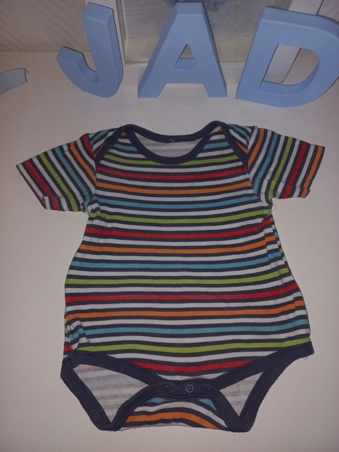 Body manches courtes Rayé multicolore garçon très bon état 6 mois - photo numéro 1