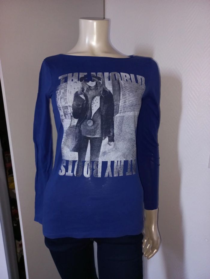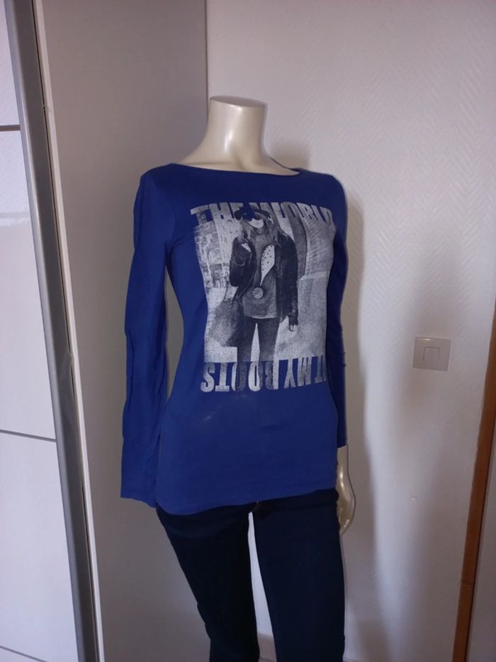 Top / tshirt manches longues bleu électrique Esprit état neuf Taille S - photo numéro 2