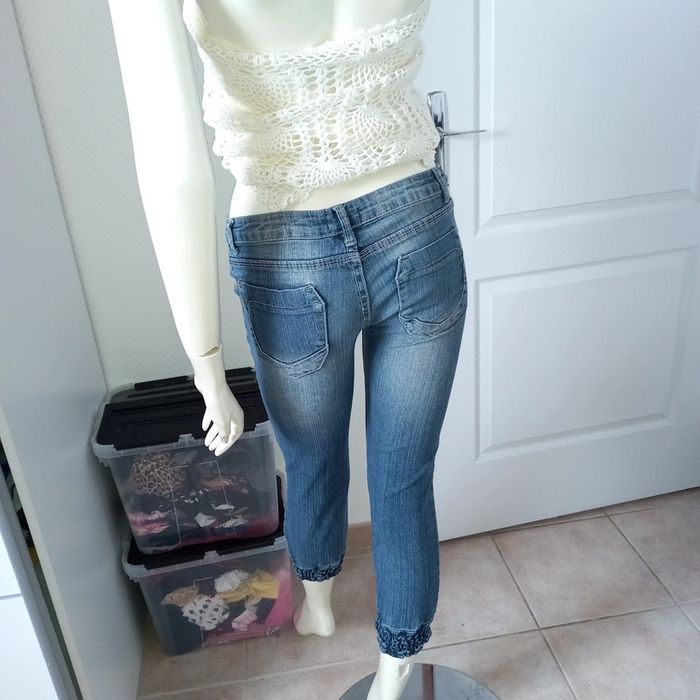 Jean pantacourt / jean 7/8 vintage skinny bleu used taille 34 excellent état - photo numéro 11