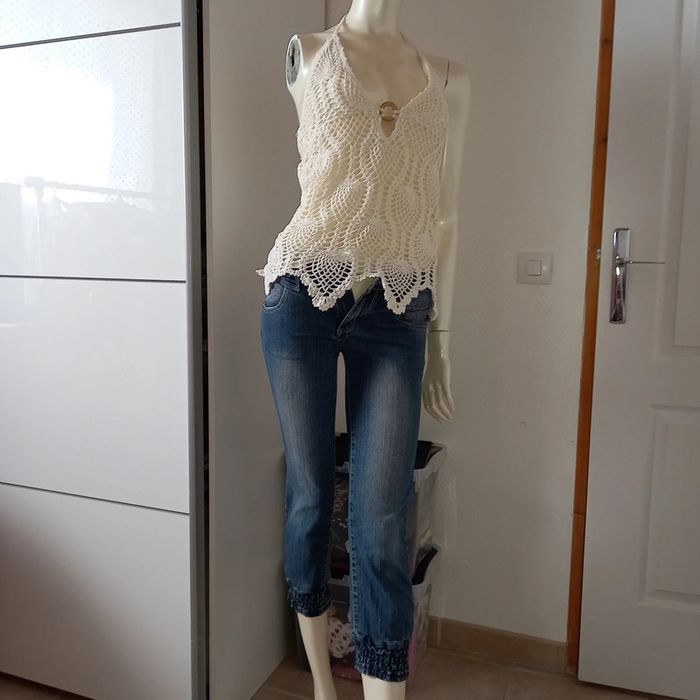 Jean pantacourt / jean 7/8 vintage skinny bleu used taille 34 excellent état - photo numéro 13