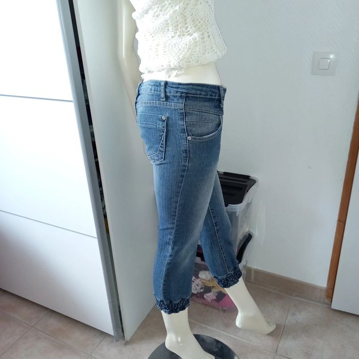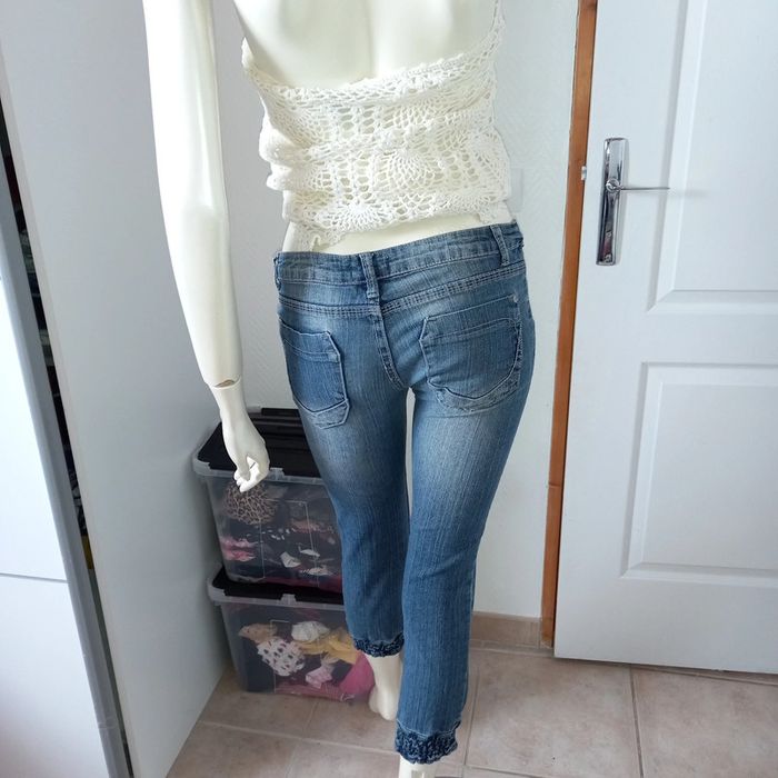Jean pantacourt / jean 7/8 vintage skinny bleu used taille 34 excellent état - photo numéro 7