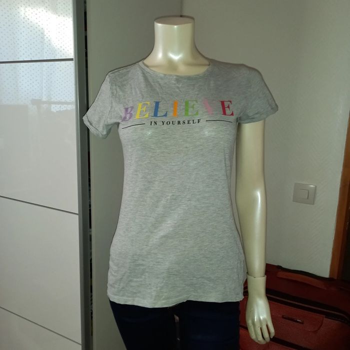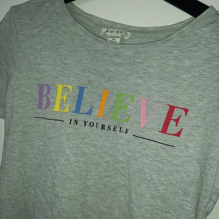 💫Tshirt état neuf Believe in yourself💫 Tshirt Manches courtes Gris chiné Imprimé multicolore "believe in youself" Amisu Taille xs Froissé sorry 😅 mais état neuf Un basic ...au message tellement vrai... #tshirt #tshirtmanchescourtes #amisu #grischine #gris #!flocage #believeinyourself #multicolore #tailleXs #taille34 #colrond #basic #musthave #casual #atschool #adofille #printemps #été #printempsete2022 #sojufemme #sojufemmetailleXs #sojufemmetaille34 #sojufemmeXs #sojufemme34 #sojufemmetshirt #sojufemmetshirt34 #sojufemmetshirtsXs