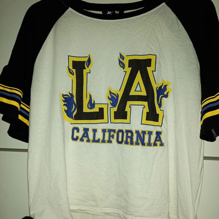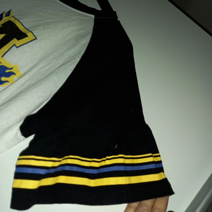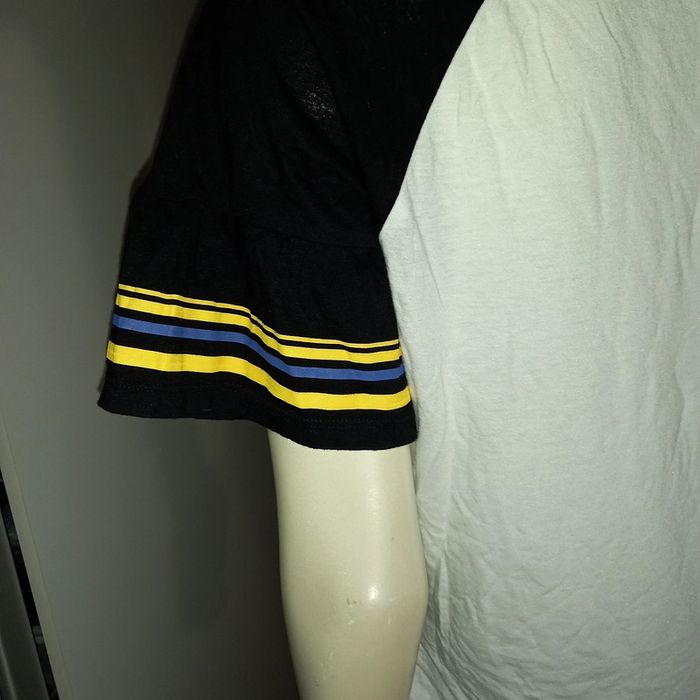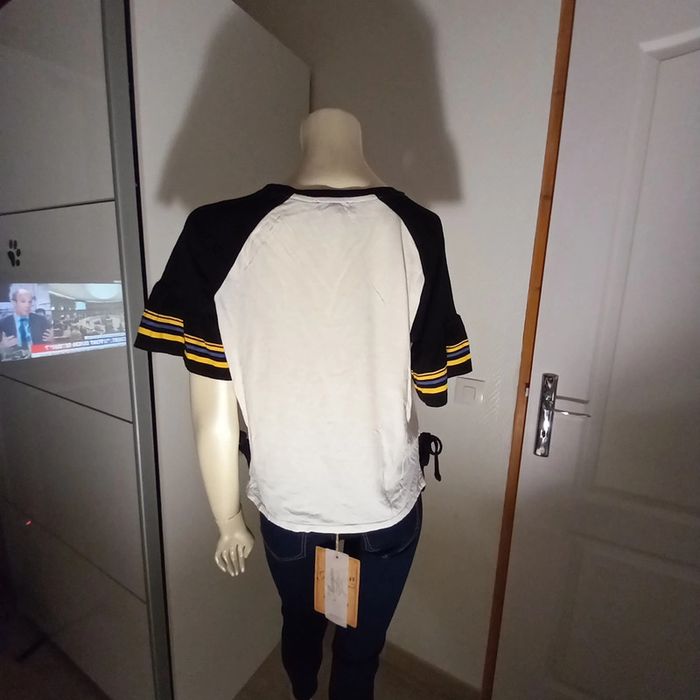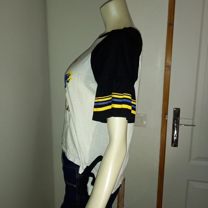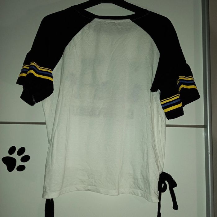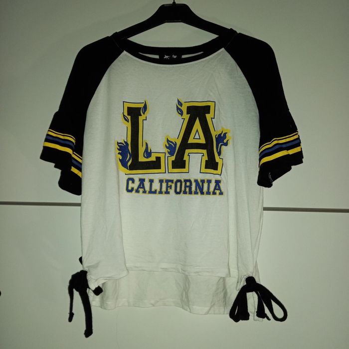 Un tshirt original? C'est par ⬇️ Tshirt Manches courtes Blanc imprimé Manches volantes noires Bleu et jaune Détails Lacets Plus court devant Col rond Très bon état Taille Xs étiquette convient également à une taille S Peut faire le bonheur d'une ado 😉 #tshirt #manchescourtes #tshirtmanchescourtes #jennyfer #tailleXs #taille34 #impriméLA #manchesvolantees #blanc #noir #jaune #bleu #detailslacets #detailsnoeuds #printemps #été #ado #adofille #sojufemme #sojufemme34 #sojufemmetailleXs ##sojufemmetaille34 #sojufemmeXs
