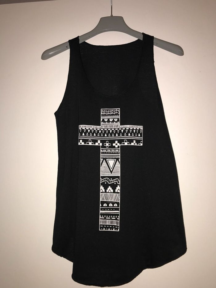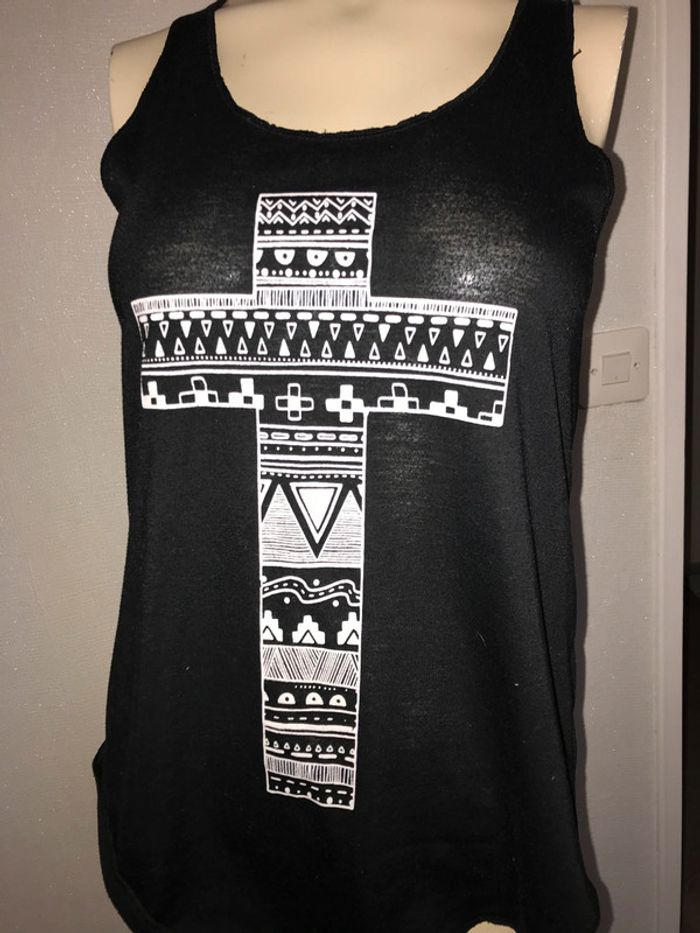 #debardeur #dosnageur #noir #fluide #tailleunique #leger #motifcroix #croix #tresbonetat #blanc #printemps #ete #printempsete #printempsete #espritrock #musthave #petitprix #soju #sojufemme #sojufemmetailleunique