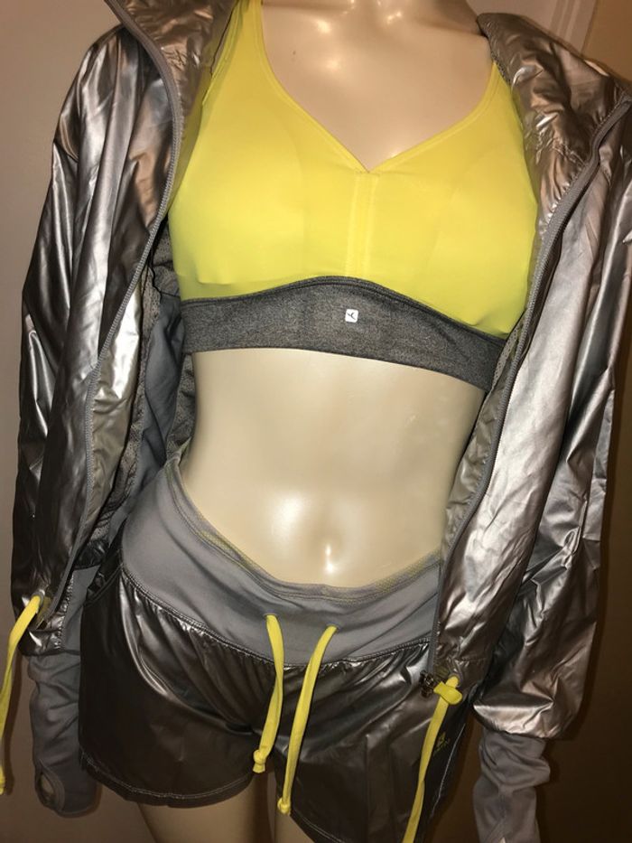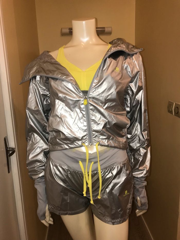 #tenusport #ensemblesport #tenuesportfemme #tenuesportfemmetaillexs #tenuesportfemmetailles #tenuesportfemme3pieces #neuve #jamaisportée #veste #vestecapuche #short #brassière #grismetal #métalisé #gris #brillant #jaune #sportswear #feminin #confortable #girly #reflechisant #asaisir #sport2019 #domyos #asaisir #soju #sojufemme #sojufemmexs #sojufemmes