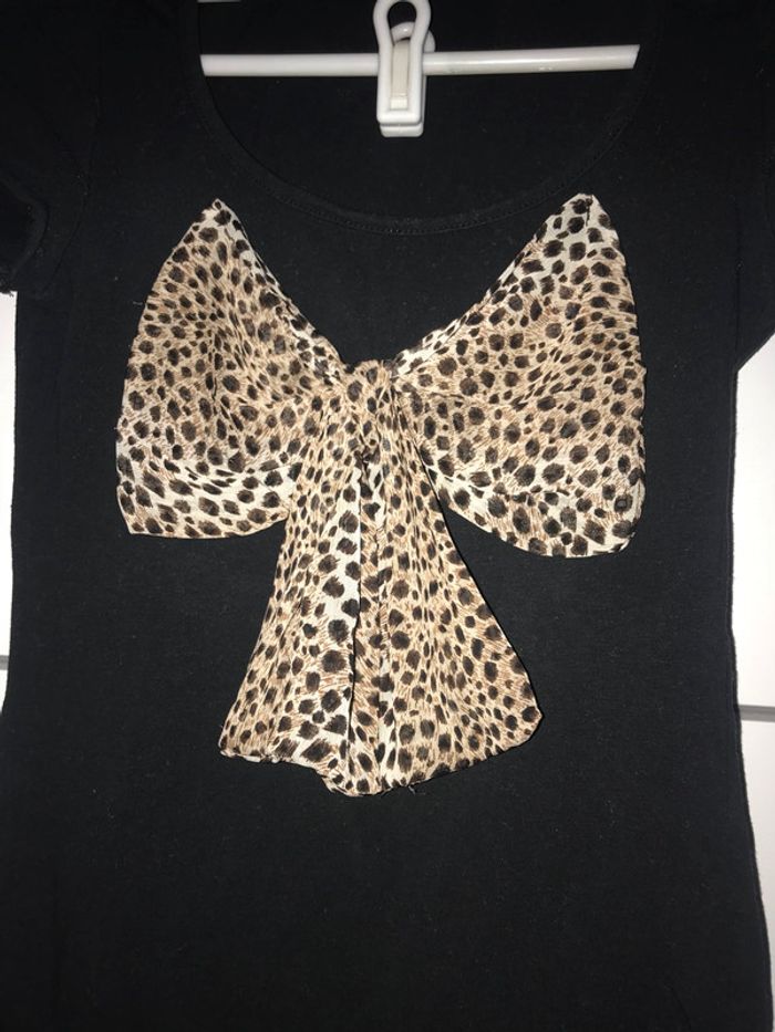 Top t-shirt noir moulant nous léopard état neuf taille S - photo numéro 3