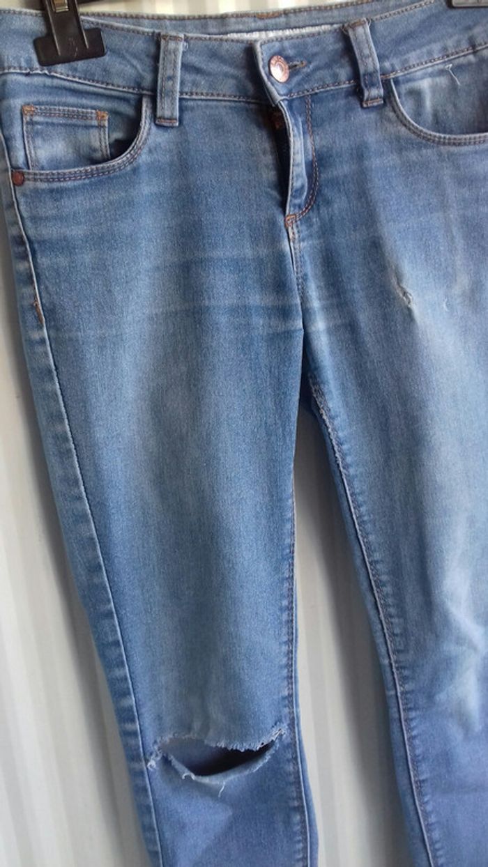 Jeans slim troue fille excellent état bleu used 8/9 ans - photo numéro 5