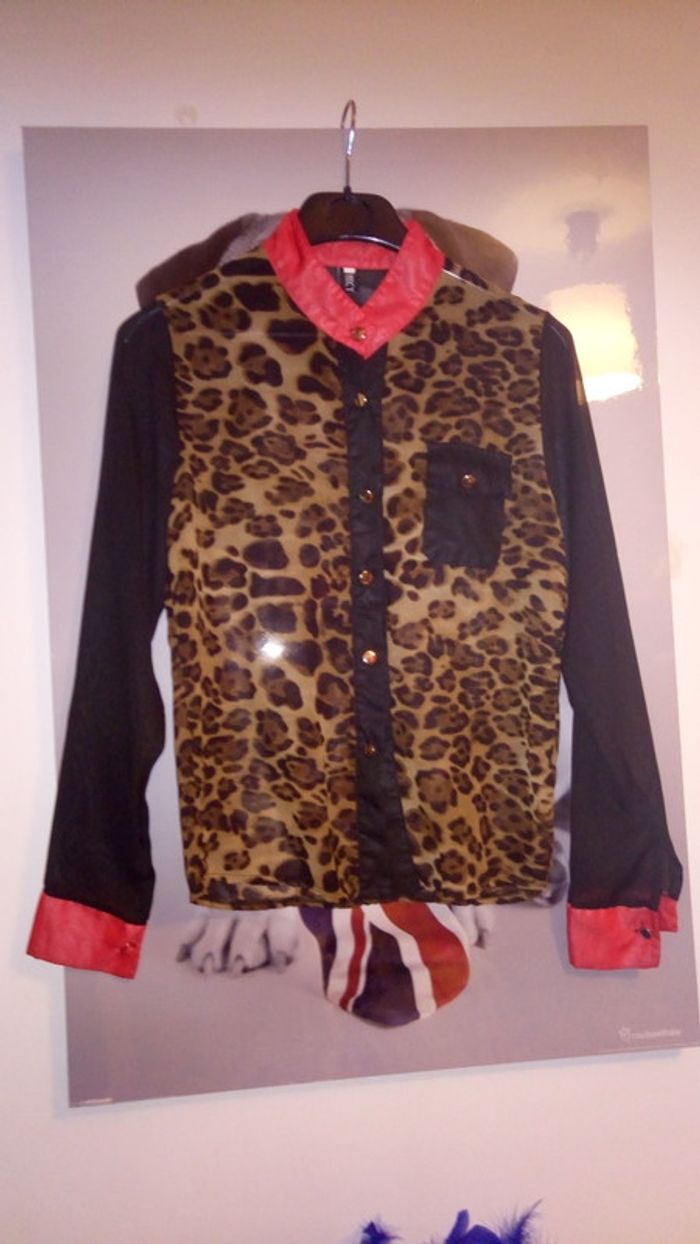 #chemise #blouse #chemisier #voile #etatneuf #tailleS #taille36 #tricolore #léopard #rouge #noir #boutonnièredevant #boutonsdores #boutonmanche #musthave #intemporel #inconditionnel #indémodable #asaisir #casual #atwork #casualchic #soirée